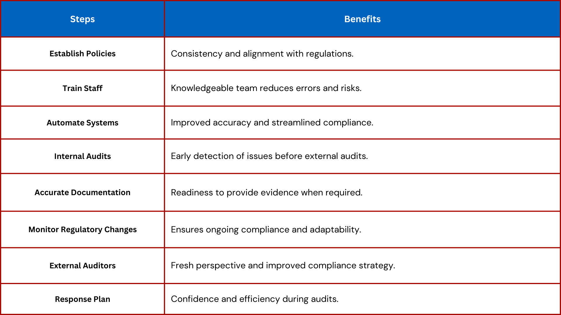 - Conduct Regular Internal Audits